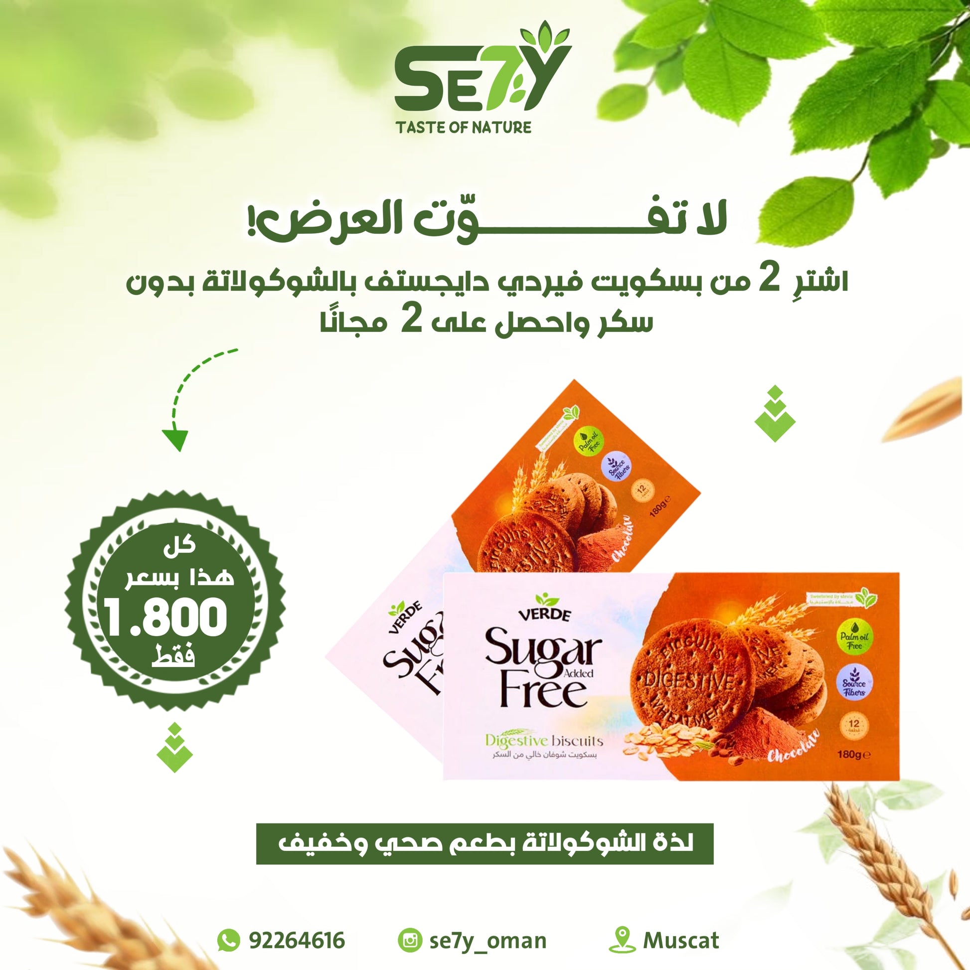اشترِ 2 من بسكويت فيردي دايجستيف بطعم الشوكولاتة بدون سكر محضر بالشوفان و حبوب القمح الكاملة واحصل على 2 مجانًا 🤩